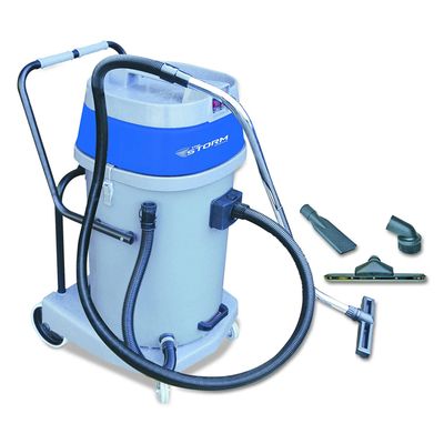 Wet or dry pickup with poly or chromed steel tank. The Storm has powerful dual 2.67 HP / 2000 Watt vacuum motors with 225 CFM and 78" water lift. Choose from 20-gallon super-durable poly or chromed steel tanks. Includes 10-foot vacuum hose, steel "S" wand and 4-piece tool kit. Order the optional 25.5" vacuum squeegee assembly.